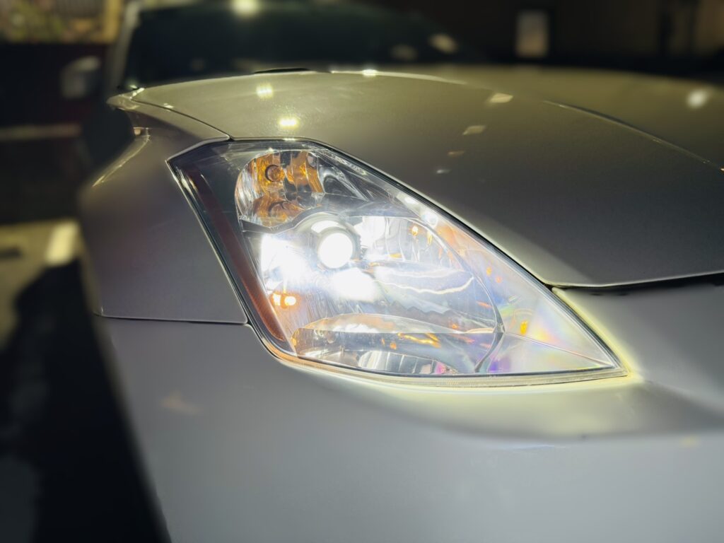 ウチのZ33のヘッドライトは車検に通らないレベルで黄ばみがすごく、この度の車検のタイミングでヘッドライトを磨いてもらいました。自分でみても明らかに汚い黄ばみなので車検が通らない未来しか見えないです。